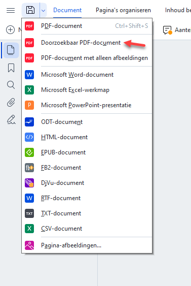3) Sla het bestand op als 'Doorzoekbaar PDF-document':