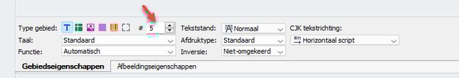 Om de volgorde aan te passen klik je eerst op een vak en pas dan het nummer aan onderin het scherm bij 'Gebiedseigenschappen':