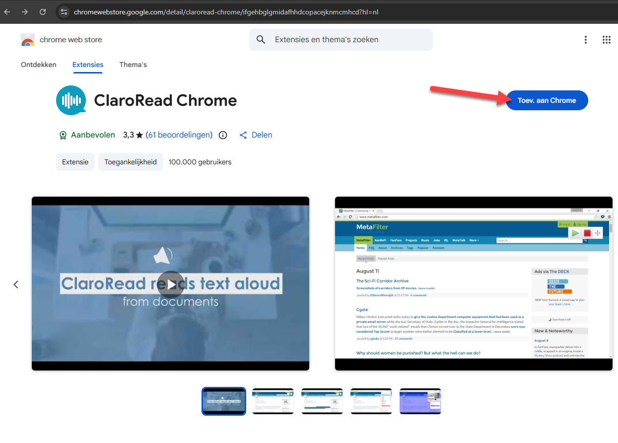 Hierbij informatie over de installatie van de ClaroRead-extensie in Google Chrome.