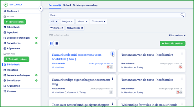 De toets staat nu in de 'bibliotheek' van het Test-Assist account.