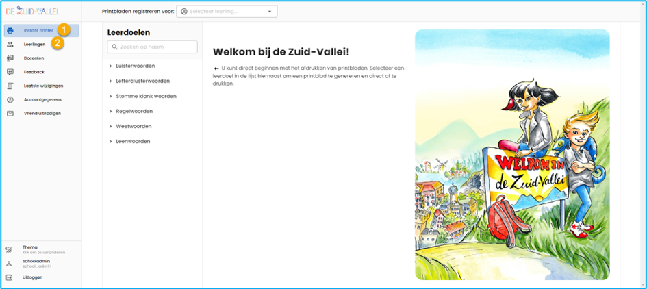 De Zuid-Vallei Printer is een online tool binnen Zuid-Vallei. Het bevat alle remediërende materialen van het programma Remediërend Spellen. Met deze applicatie kunnen remedial teachers (RT’ers), docenten en begeleiders eenvoudig oefenmateriaal klaarzetten, printen of opnieuw genereren.