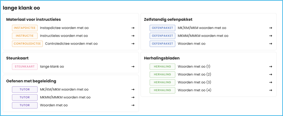 - Expliciete instructie: Het belang van expliciete instructie (Shaywitz et al. (2008) zien we terug in instructielessen die worden gegenereerd. Daarnaast bevat elk printpakket een duidelijke en bondige instructie.