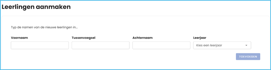 Nieuwe leerlingen maak je eenvoudig aan door op de knop ‘Nieuwe leerlingen’ te klikken.