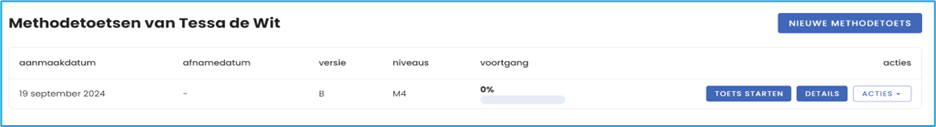Klik op de blauwe knop ‘Methodetoets aanmaken’.