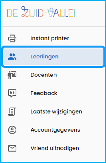 Kies in de menubalk van de Zuid-Vallei Printer de optie ‘Leerlingen’.