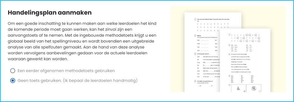 Een docent of RT’er kan ervoor kiezen om een handelingsplan te genereren vanuit een methodetoets, maar dat hoeft niet.