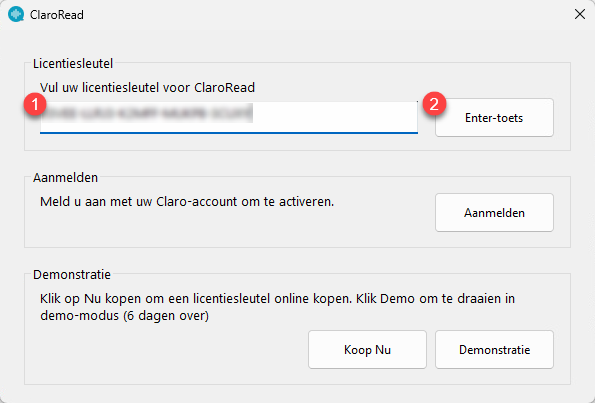 - ClaroRead laat nu een activatiescherm zien (zie afbeelding):