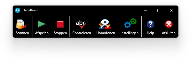 - De werkbalk van ClaroRead is nu geopend en klaar voor gebruik (zie afbeelding):