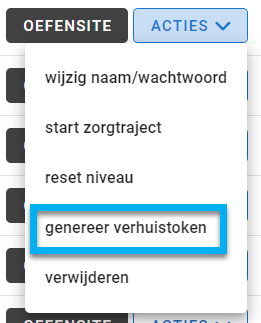 - Kies voor de optie: [ genereer verhuistoken ]