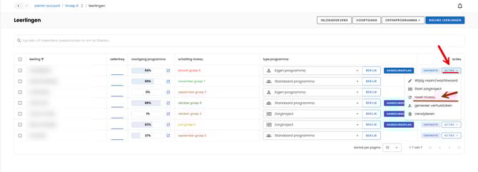 Als er geen handmatige taken worden aangemaakt dan wordt het adaptieve programma gevolgd. Het niveau waarop geoefend wordt is direct in het leerlingoverzicht te zien onder de kopjes "voortgang programma" en "schatting niveau".