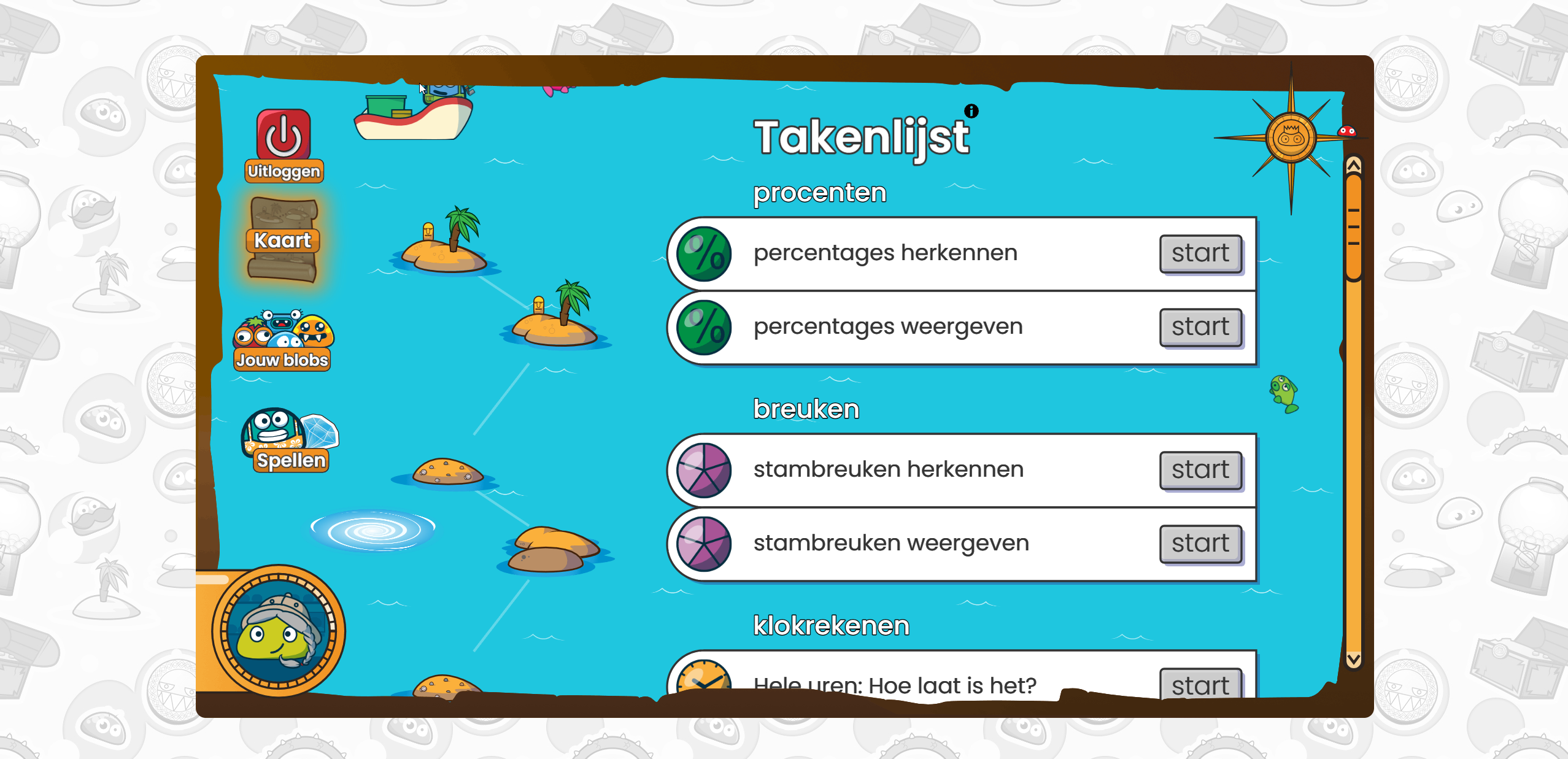 De takenlijst zoals in Taalblobs vind je niet terug in Rekenblobs. Dit komt omdat het een ander programma is met een eigen didactiek.