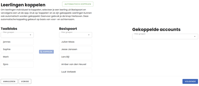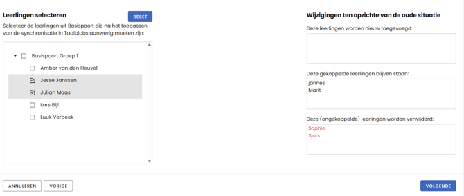 Net als bij het selectief synchroniseren, heb je hier eerst de mogelijkheid om aan te geven welke leerlingen bij elkaar horen.
