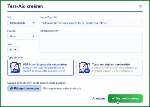 In dit artikel richten we ons op de Toets met digitale antwoorden. Hierbij krijgt de leerling de toets digitaal en is het mogelijk voor leerlingen om hun antwoorden te typen in Test-Assist en deze voor te laten lezen.