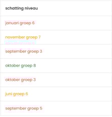 Onder het kopje "Schatting niveau" Kun je zien wat het groepsniveau is van het kind. Dit ziet er ongeveer uit als onderstaande afbeelding.