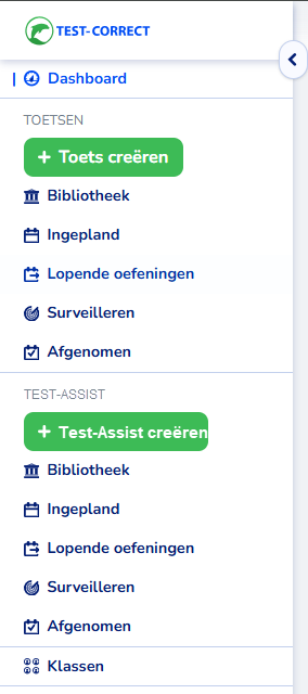 Maak je gebruik van zowel Test-Assist als Test-Correct dan zie je nadat je bent ingelogd in Test-Correct aan de linkerkant 2 mogelijkheden: