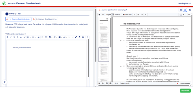 Bij de optie ‘PDF voorlezen’ kunnen leerlingen de toets digitaal inzien en laten verklanken, maar beantwoorden zij de vragen op papier. Bij de optie ‘Digitaal beantwoorden’ worden toetsen volledig binnen de applicatie gemaakt. Bij elke toets kan worden ingesteld op welke manier de toets afgenomen moet worden en welke opties beschikbaar zijn, zoals de mogelijkheid om spellingcontrole te gebruiken.